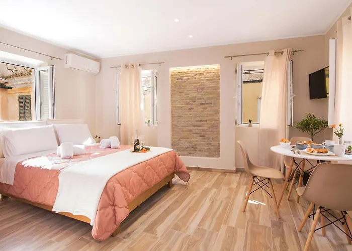 A 31 m²-es apartman Korfu óvárosa körzetben található, emellett lehetőséget biztosít a Szent Szpirídon-templom meglátogatására, amely mindössze 6 percnyi sétára van. A Korfu óváros 11 perc alatt elérhető gyalogosan. A Bizánci Múzeum pillanatokra helyezkedik el az apartmantól.
